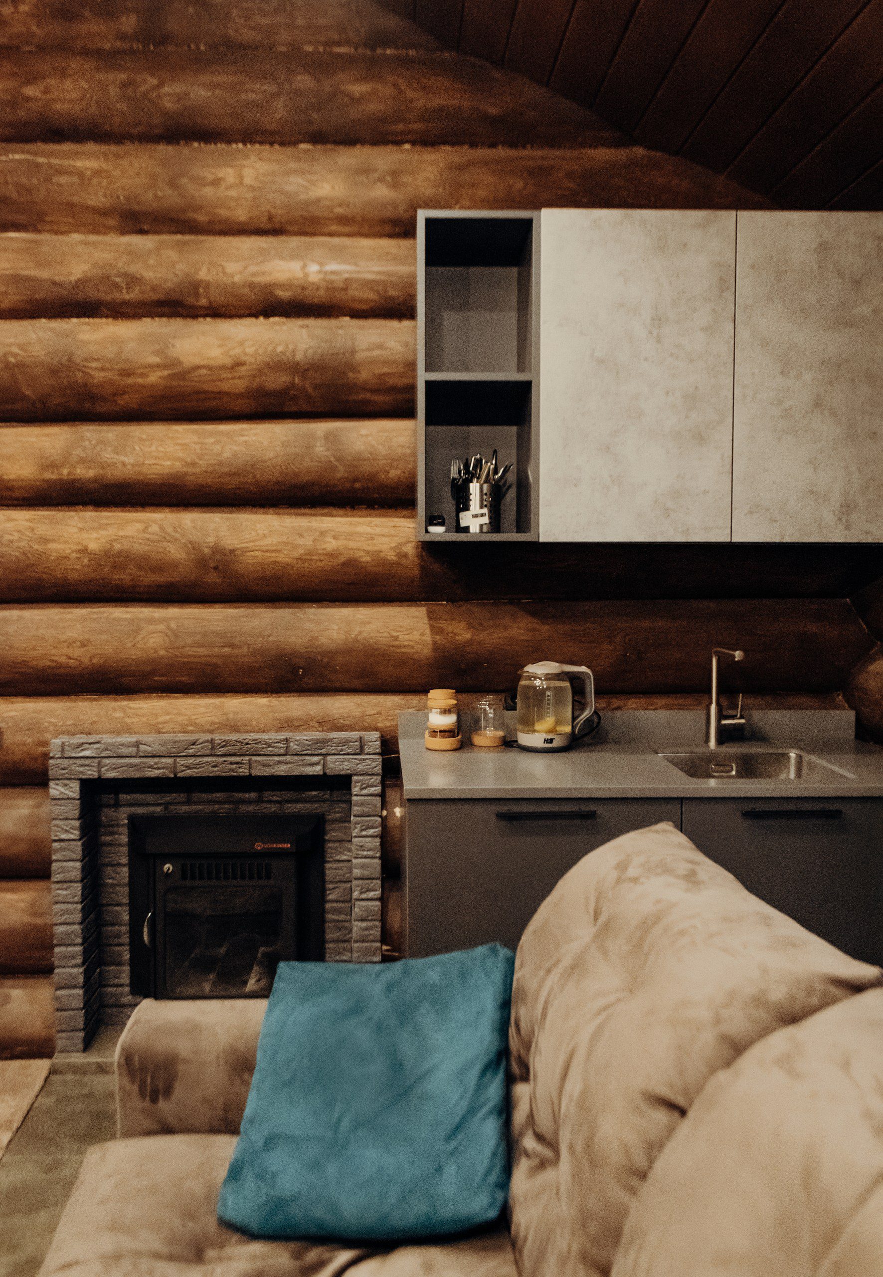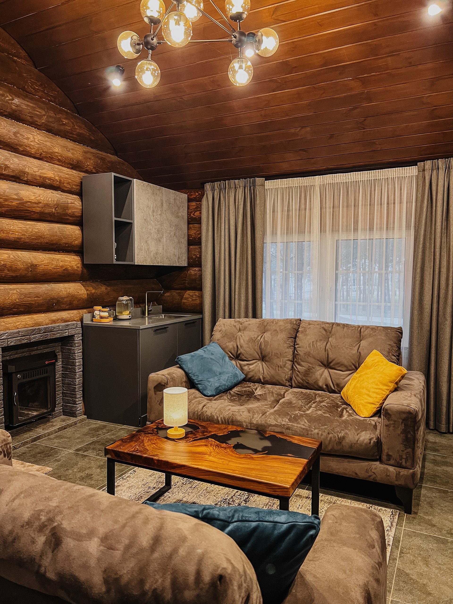 - Уютная гостиная с камином для теплых вечеров.