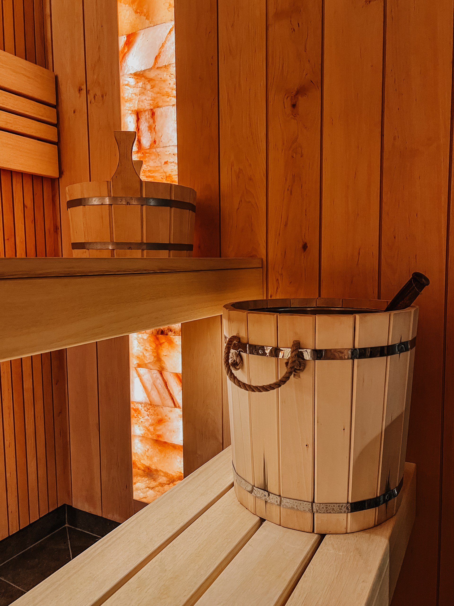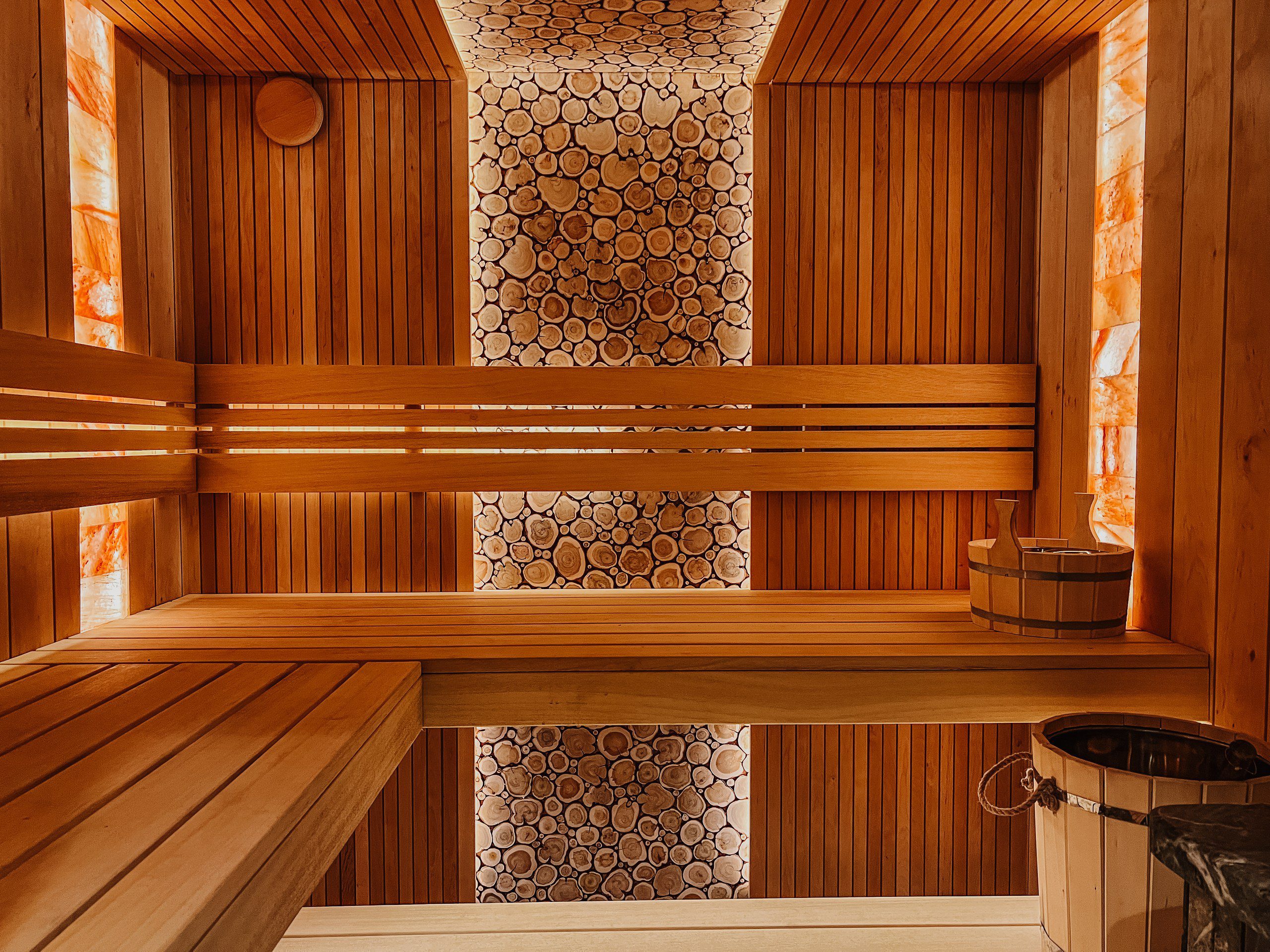 • В парной бани есть соляные вкладки плитки, которые способствуют повышению иммунитета и улучшению общего самочувствия.