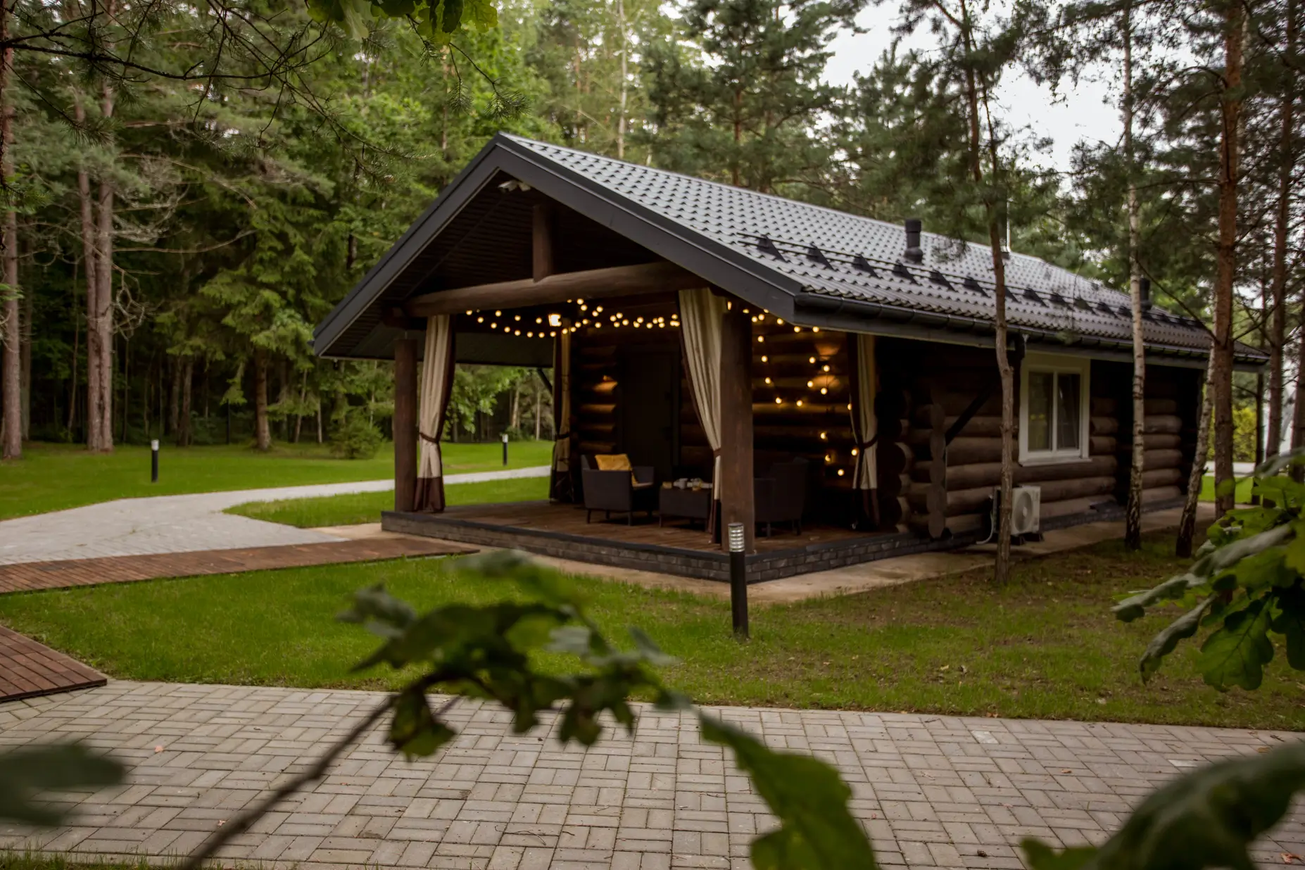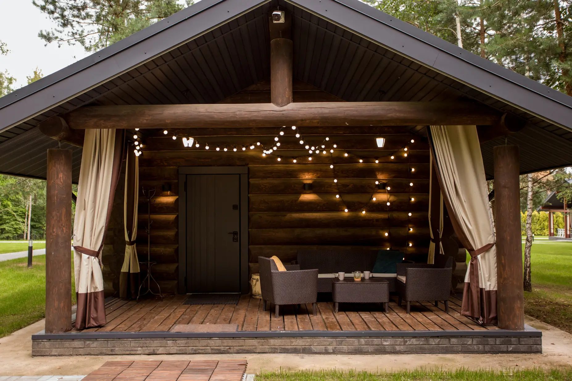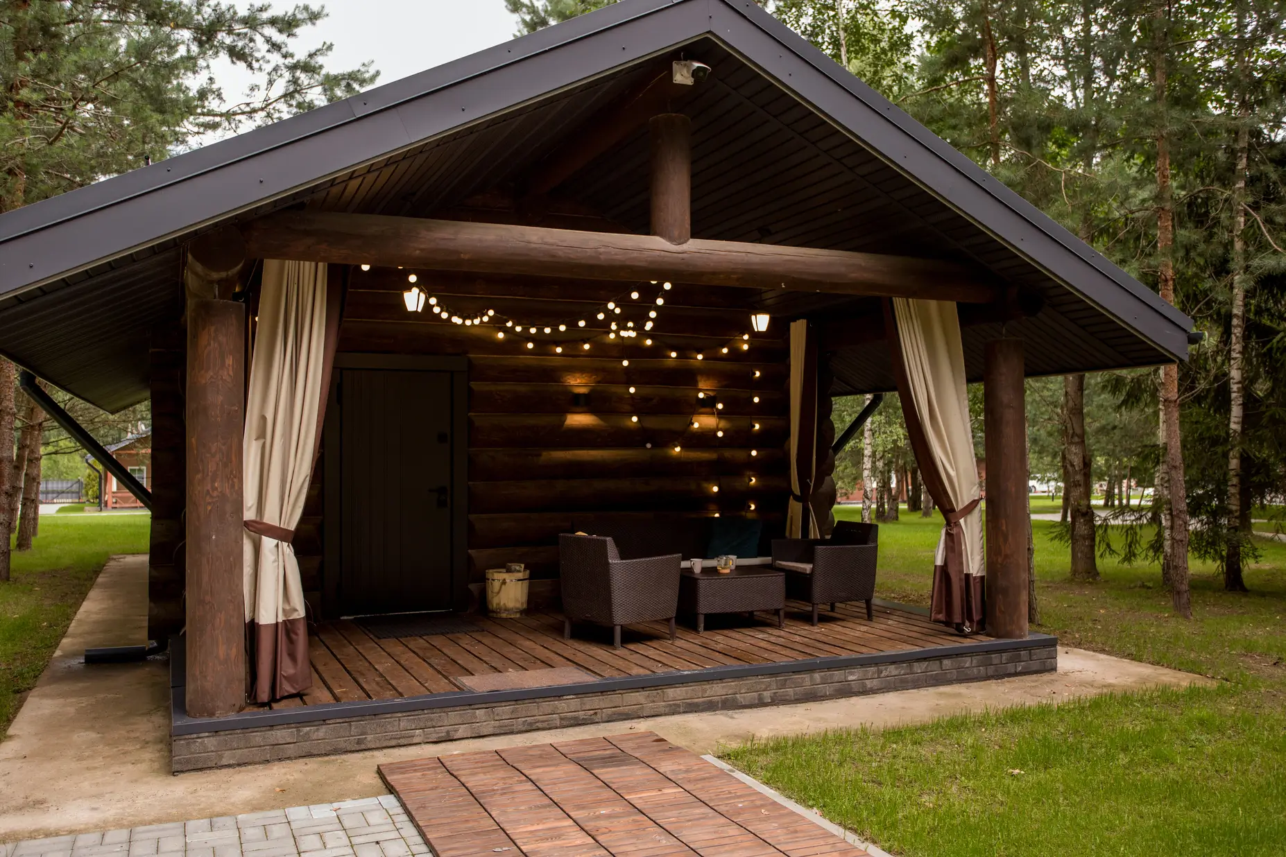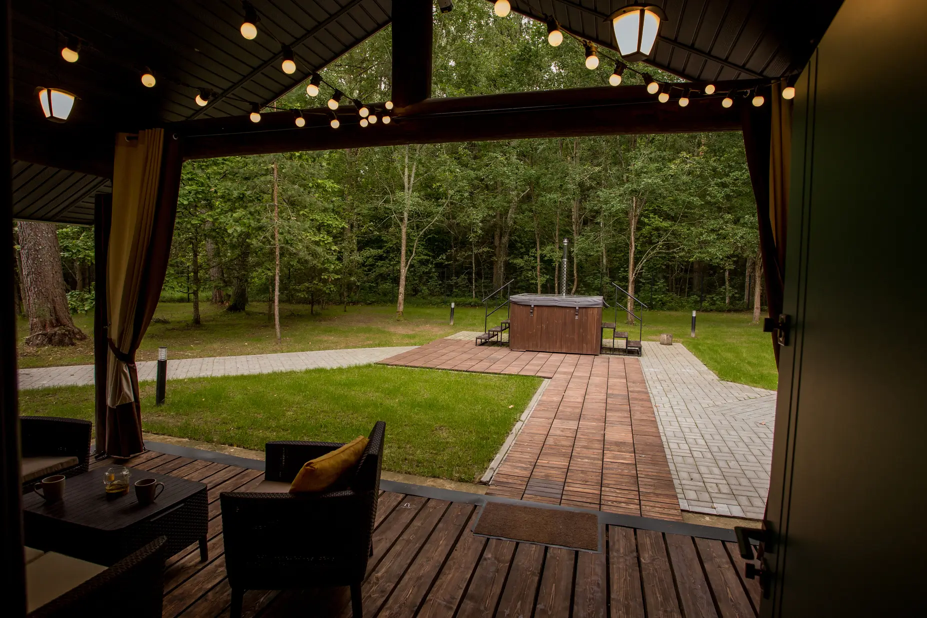 • Рядом с баней есть зона для барбекю и горячая купель с джакузи.