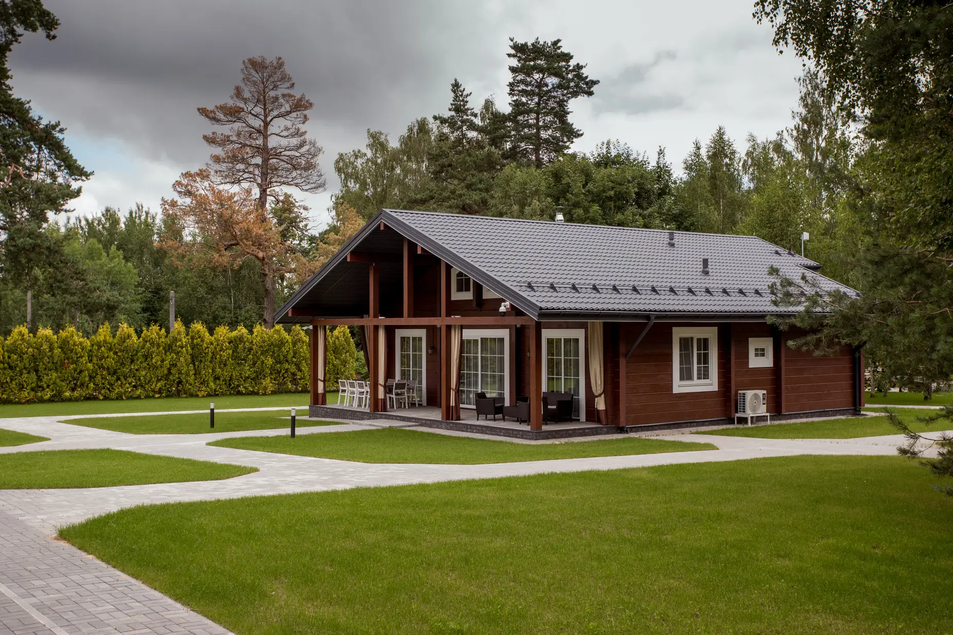 - Дом, площадью 149м2, включает в себя: кухню с обеденной зоной, гостиную с камином, три спальни, санузел, ванная, прихожая, постирочную комната, терраса. Здесь с комфортом могут разместиться до 6 человек.