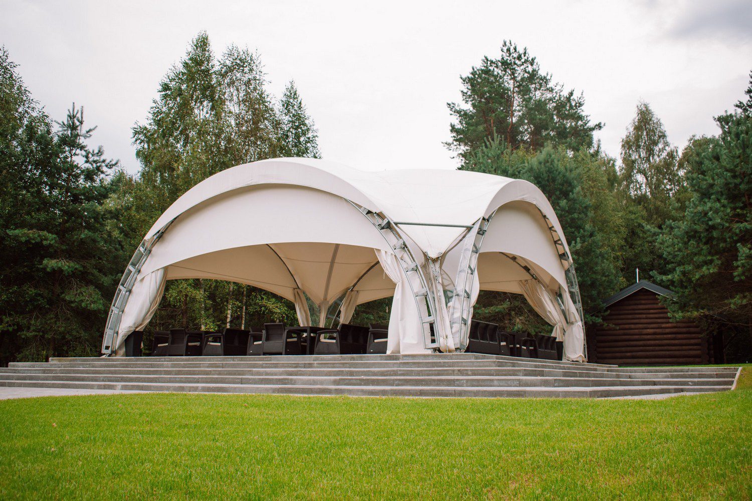 Шатер подходит для банкетов, семейных торжеств, свадебных церемоний и корпоративных встреч.
